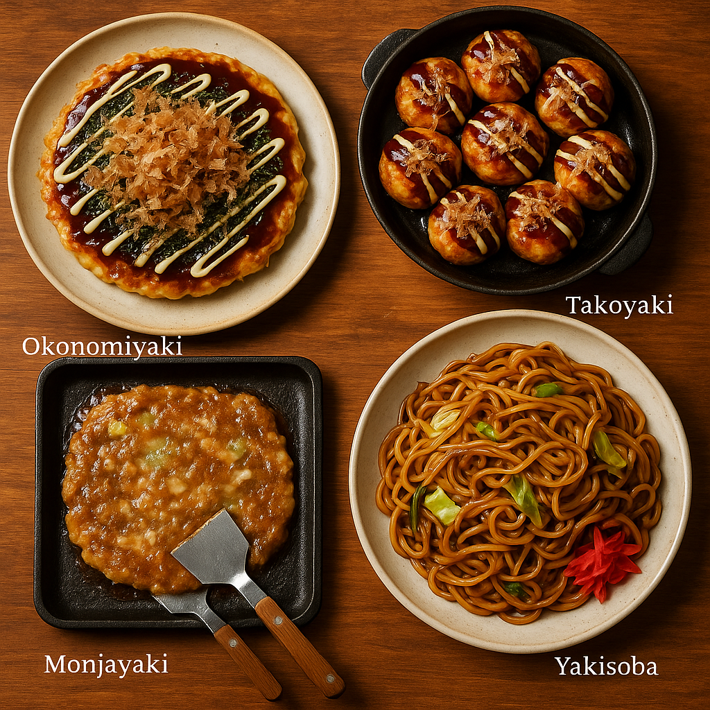 독자 여러분께서는 철판 위에서 소스가 “치익―” 하고 터지는 그 순간, 마음까지 기름지고 따뜻해지는 경험을 해 보신 적이 있으신가요? 저는 유학생 시절, 아사쿠사 골목에서 처음 맛본 오코노미야키의 달콤짭짤한 향기를 아직도 잊지 못하고 있습니다. 고소한 반죽 위에 가쓰오부시가 파도처럼 출렁이며 춤추던 장면은, 제게 ‘거리 음식도 예술이 될 수 있다’는 사실을 일깨워 주었습니다. 오늘은 오코노미야키·타코야키·몬자야키·야키소바까지, 네 가지 철판 간식을 역사·재료·조리법·문화적 맥락으로 나누어 친절하게 안내해 드리겠습니다.