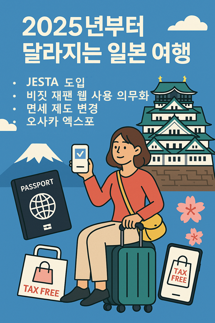 2025년 이후 일본 여행을 준비하고 있다면, 반드시 확인해야 할 중요한 제도 변화와 새로운 규정들이 있습니다. 이번 글에서는 2025년부터 일본을 방문하는 관광객에게 적용되는 최신 변화들을 체계적으로 정리해 드립니다. 전자 여행 허가제도 JESTA, Visit Japan Web 활용, 면세 제도 개편, 그리고 오사카 엑스포 2025까지, 모두가 궁금해하는 실용적인 정보를 한곳에 모았습니다.